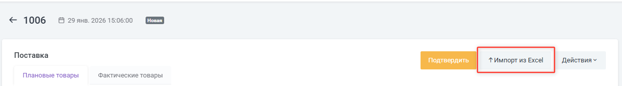 Для объемных поставок есть возможность импортировать данные о товарах с помощью Excel. для этого нажмите на кнопку "Импорт из Excel".