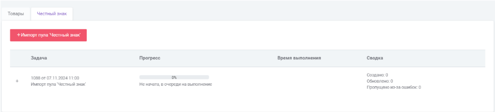 Обратите внимание, если у вас товар с вариантами, то вы вводите id варианта для корректного распределения маркировки между вариантами.