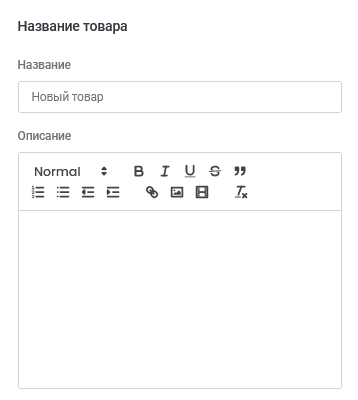 В данном разделе вы сможете ввести название товара и его краткое описание.